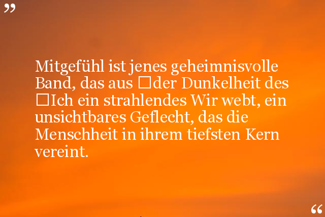 Mitgefühl ist jenes geheimnisvolle Band, das aus der Dunkelheit des Ich ein strahlendes Wir webt, ein unsichtbares Geflecht, das die Menschheit in ihrem tiefsten Kern vereint.