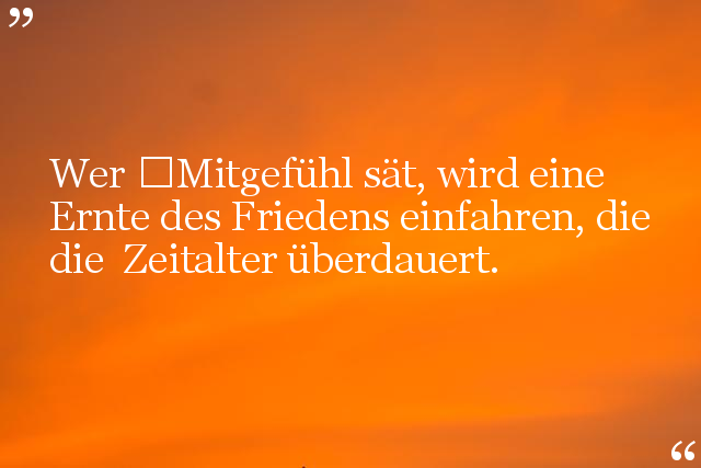 Wer Mitgefühl sät, wird eine Ernte des Friedens einfahren, die die Zeitalter überdauert.