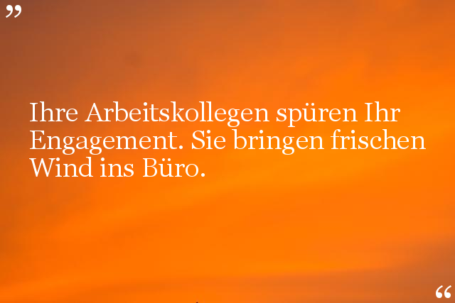Ihre Arbeitskollegen spüren Ihr Engagement. Sie bringen frischen Wind ins Büro.