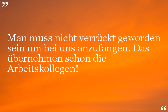 Man muss nicht verrückt geworden sein um bei uns anzufangen. Das übernehmen schon die Arbeitskollegen!