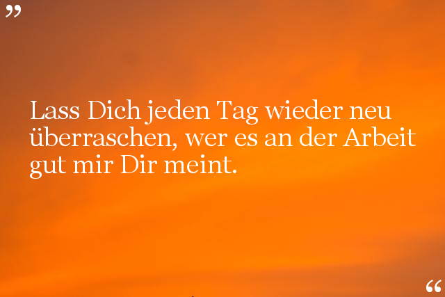 Lass Dich jeden Tag wieder neu überraschen, wer es an der Arbeit gut mir Dir meint.