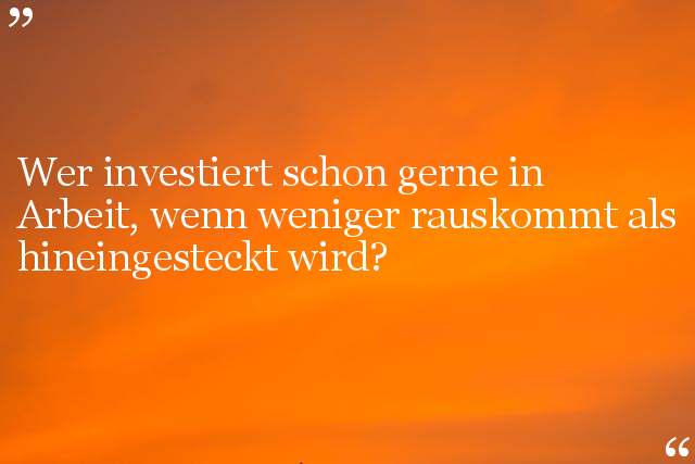 Wer investiert schon gerne in Arbeit, wenn weniger rauskommt als hineingesteckt wird?