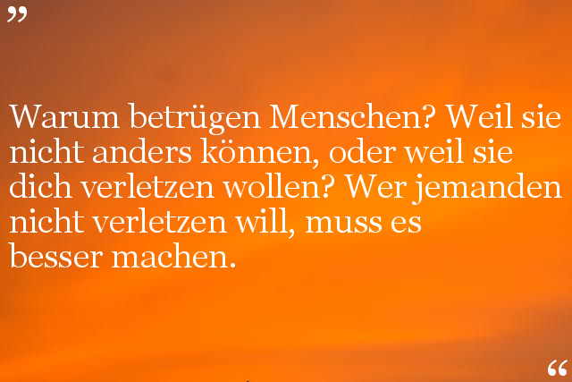 Warum betrügen Menschen? Weil sie nicht anders können, oder weil sie dich verletzen wollen? Wer jemanden nicht verletzen will, muss es besser machen.