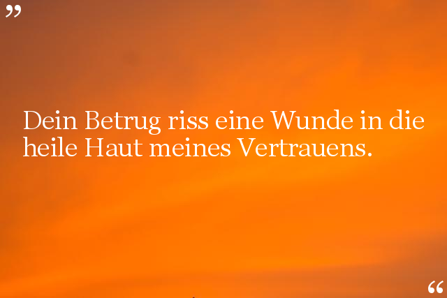 Dein Betrug riss eine Wunde in die heile Haut meines Vertrauens.