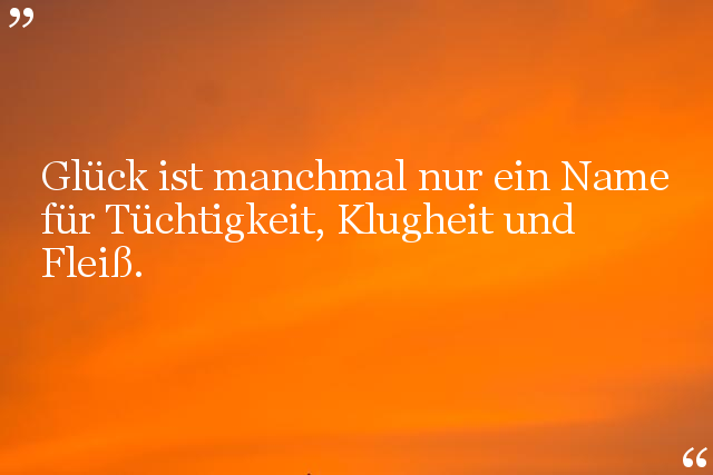 Glück ist manchmal nur ein Name für Tüchtigkeit, Klugheit und Fleiß.
