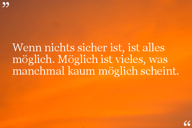 Wenn nichts sicher ist, ist alles möglich. Möglich ist vieles, was manchmal kaum möglich scheint.