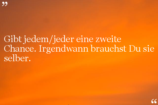 Gibt jedem/jeder eine zweite Chance. Irgendwann brauchst Du sie selber.