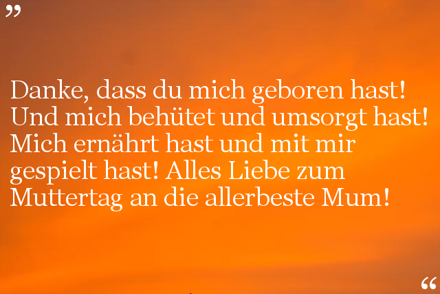 Danke, dass du mich geboren hast! Und mich behütet und umsorgt hast! Mich ernährt hast und mit mir gespielt hast! Alles Liebe zum Muttertag an die allerbeste Mum!
