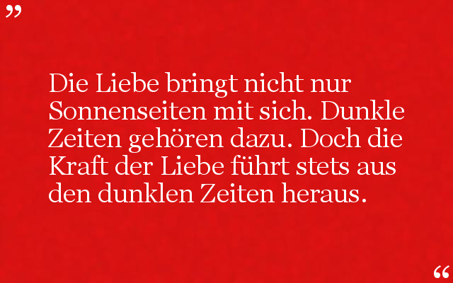 Die Liebe bringt nicht nur Sonnenseiten mit sich. Dunkle Zeiten gehören dazu. Doch die Kraft der Liebe führt stets aus den dunklen Zeiten heraus.