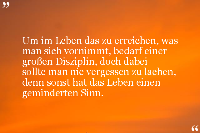 Um im Leben das zu erreichen, was man sich vornimmt, bedarf einer großen Disziplin, doch dabei sollte man nie vergessen zu lachen, denn sonst hat das Leben einen geminderten Sinn.