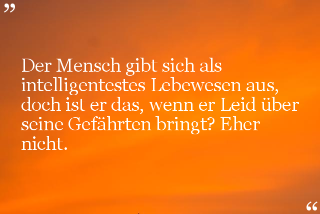 Der Mensch gibt sich als intelligentestes Lebewesen aus, doch ist er das, wenn er Leid über seine Gefährten bringt? Eher nicht.