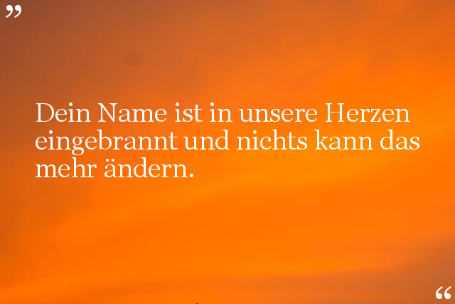 Dein Name ist in unsere Herzen eingebrannt und nichts kann das mehr ändern.