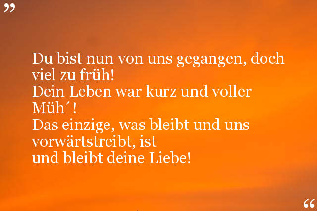 Gefallen dir die Sprüche für trauersprüche nicht? Veröffentliche jetzt Deinen Spruch für trauersprüche.
