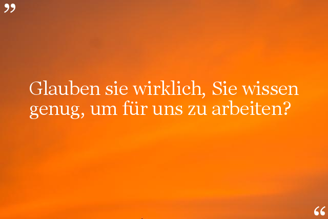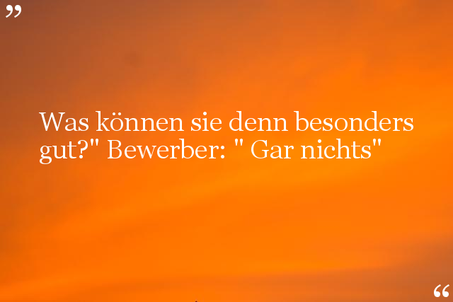 Was können sie denn besonders gut?" Bewerber: " Gar nichts"