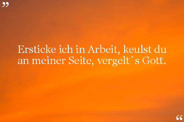 Ersticke ich in Arbeit, keulst du an meiner Seite, vergelt´s Gott.