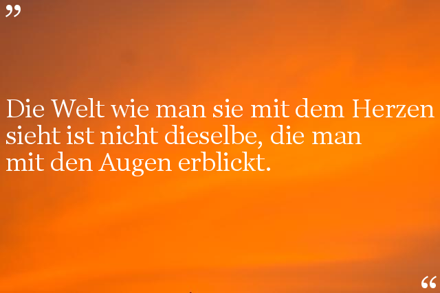 Die Welt wie man sie mit dem Herzen sieht ist nicht dieselbe, die man mit den Augen erblickt.